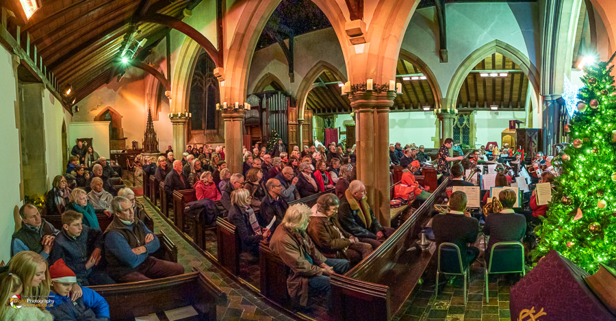 The Oddfellows Brass Band performing at Smeeton Westerby Parish Church on Friday 9th December 2022.